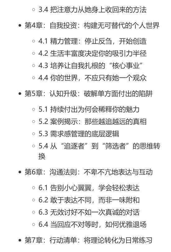 书中通过大量真实案例揭示:单方面持续付出只会稀释你的吸引力,而适当的边界感与自我聚焦反而能产生神秘感与尊重。爱不是追来的,是相互吸引而来的。当你停止内耗,停止以牺牲自我为代价去换取关注,你才会散发出平静而自信的气场,那才是亲密关系真正健康的起点。