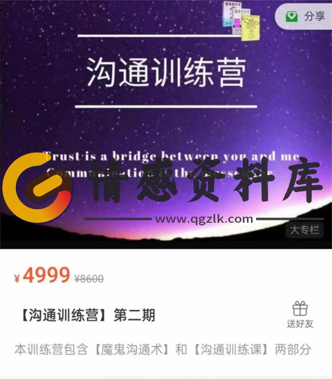 本训练营包含《魔鬼沟通术》和《沟通训练课》两部分,是阮琦老师思考自己多年社交教学的经验,总结出来的有关真实沟通的思维、心态以及一些具有实操性的、适合学员用于实际生活沟通的方法。