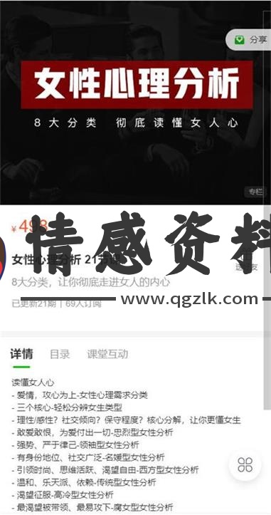 女性心理分析21节课是一门旨在帮助女性探索自我、理解自我、管理自我,并从中获得更多的满足感和幸福感的课程。这门课程面向现代女性,旨在帮助大家解决自我成长、职业发展、人际关系、情感生活、家庭生活等方面的问题。但实际上,这门课程可能会涵盖更多的主题和内容,提供更深入的分析和解读。