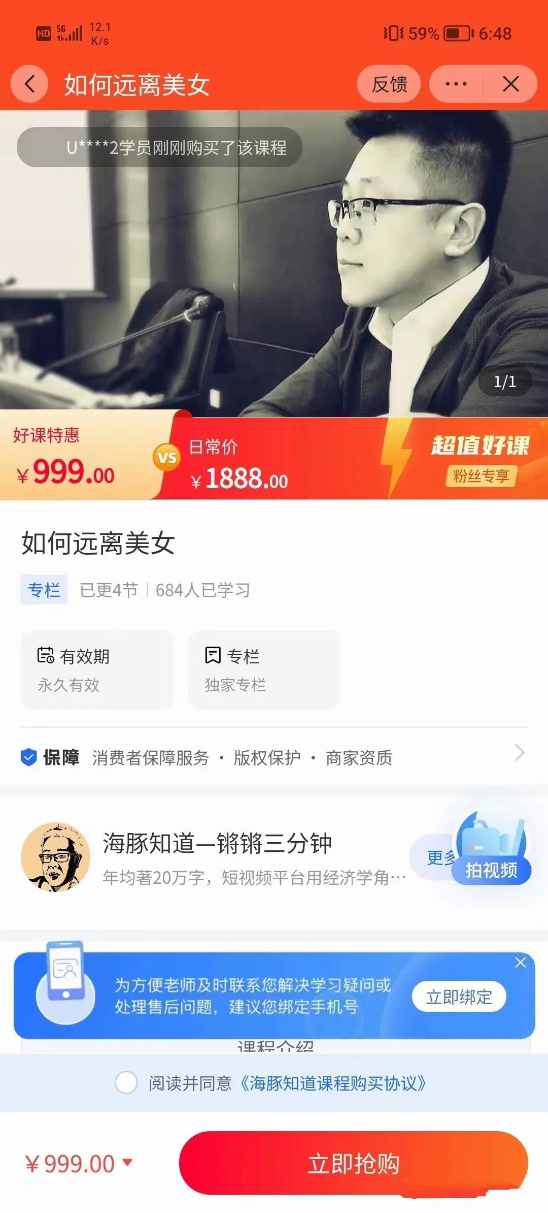 锵锵三分钟《如何远离美女》,心理健康达人年均著20万字,短视频平台用经济学角度解构感情问题的人,已1对1解决情感案例近千人,课程上线五个月已累计销售良好。