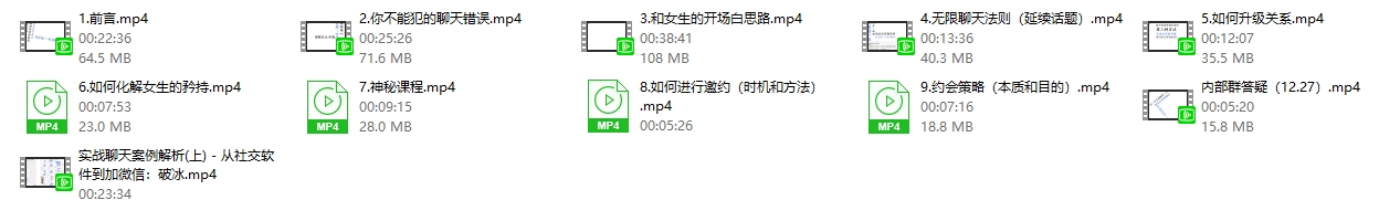 然后我来讲一下这一门课程每一节课的作用,你要学的是什么,为什么他就可以解决你不会聊天的问题,并且通过这门课能够让你跟喜欢的他在一起。