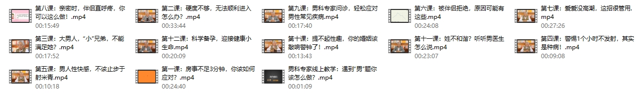 总之,马晓年教授的这套12节课程是一套系统性的男性性健康培训课程,适合那些希望改善性生活质量、解决性健康问题的男性听众。通过这套课程,学员可以获得专业的指导和建议,从而重燃自信,提升生活质量。