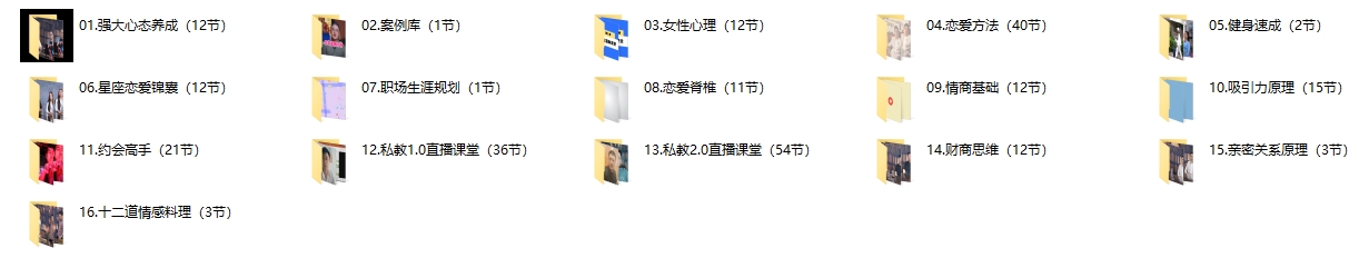- 恋爱方法:共40节,详细传授各种恋爱技巧和方法。