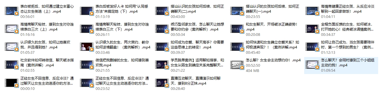 《心态建设》和《聊天逆袭》是两套专注于提升个人情感和社交能力的课程,旨在帮助人们在恋爱和日常交流中取得更好的成绩。