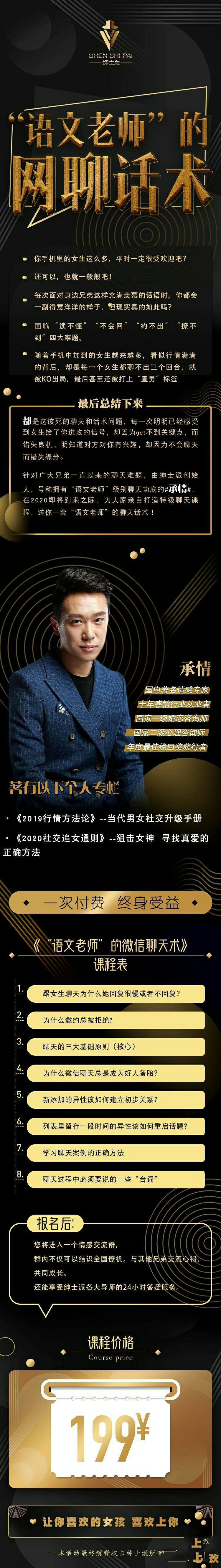 承情的“语文老师”微信网撩术课程主要针对如何在微信上与异性进行有效沟通,解决常见的聊天难题。该课程内容包括以下几个方面: