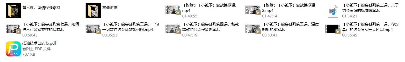《爱情光谱》的《约会专题》是一套系统化的恋爱教学课程,旨在帮助学员掌握从邀约到约会再到亲密交往的各个环节技巧和方法。该课程通过详细的视频讲解,涵盖了约见前的准备、约会中的表现以及如何与女性建立深层次联系等内容。