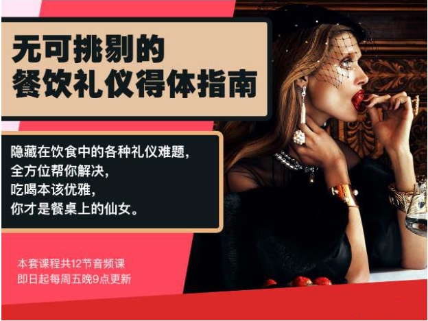 《Chic无可挑剔的餐饮礼仪得体指南》是一套由Chic团队精心打造的餐饮礼仪课程,旨在帮助女性在各种饮食场景中表现得体。该课程结合了近百位女生在饮食场景中的失礼经历和资深人士的专业指导,由拥有18年经验的日本高定旅行专家马文先生主讲,并由金牌课程文案栗十三主笔。