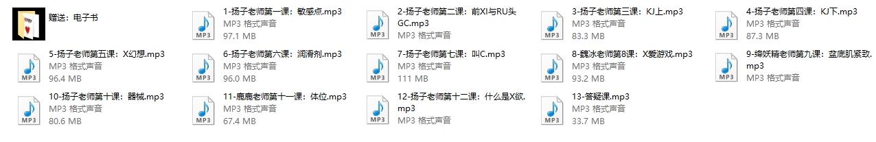 此外,课程还赠送了一些电子书资源,如《别拿男人不当动物》和《完美关系的秘密》,这些资源可以帮助学员更深入地了解亲密关系的各个方面。