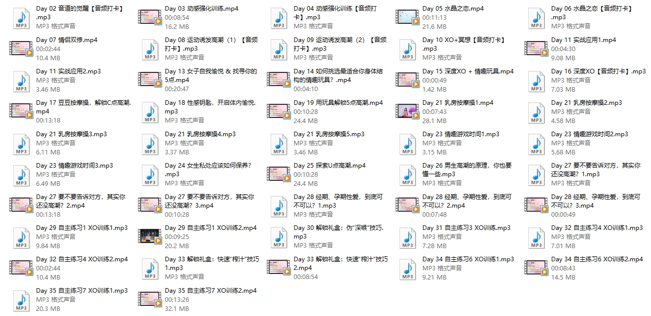 通过28天的打卡学习,让你在拥有灵动阴道的同时,学会巧用玩具开发自己的高潮,各种按摩操还可以用于前戏调情,给你全方位获得高潮的技巧。