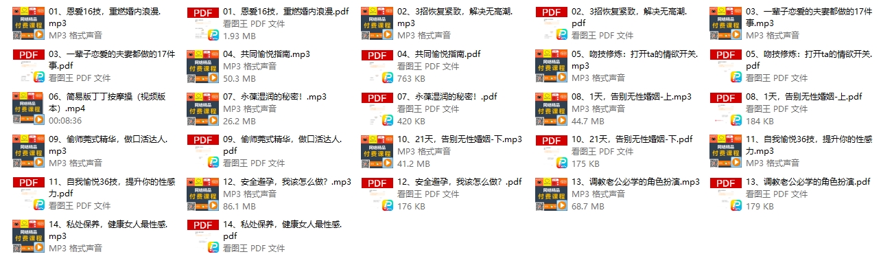 课程内容包括如何快速提升女性魅力,同时解决婚后夫妻感情变平淡、性生活无快感等女性私密问题。此外,课程还提供了具体的练习方法,让女性能够在短时间内显著改善自己的情感状态和生活质量。
