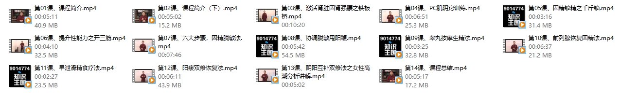 课程目录详细列出了每一课的内容,如激活肾脏固肾强腰之铁板桥、PC肌阴窍训练、固精锁精之千斤锁等。这些课程不仅帮助学员掌握具体的性技巧,还能通过一系列步骤和方法来提升整体的性能力。