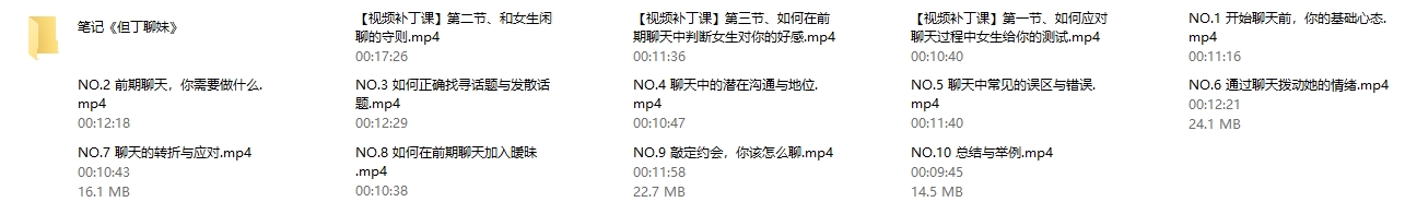 这些课程不仅提供了理论知识,还包含实际操作的指导,帮助学员提升自身的魅力和沟通能力,从而在社交场合中更加自信地与异性互动。课程内容通常以视频形式呈现,并附有详细的笔记供学习者参考。