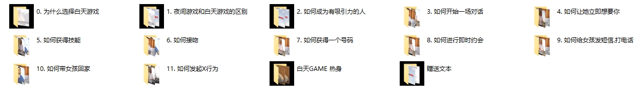 课程内容包括多个部分,例如为什么选择白天游戏、夜间游戏和白天游戏的区别、如何成为有吸引力的人等。课程强调通过白天游戏来建立更稳定的关系,并且提供了具体的技巧和策略,如如何开始一场对话、如何让女孩想与你单独相处等。