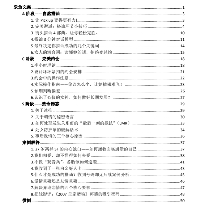 乐鱼是国内 PUA 界的顶尖高手,以行云流水炉火纯青的技术成为很多人的偶像。他的文章每次都会让人感到惊叹和崇拜,用实际证明了“皮UA 创造奇迹”的说法。我一直是乐鱼的崇拜者,每次阅读他的文章,都得到新的感悟。因此我特意把他的文章做了一个集合,不敢独享,分享给大家。恭喜你,很幸运看到他的文集,接下来,去感受顶级皮UA 的魅力吧!