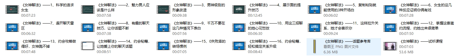 倪情感课程专区除了收集《女神聊法》课程外,还收集其他倪情感相关课程,需要学习的兄弟课到专区下载学习!