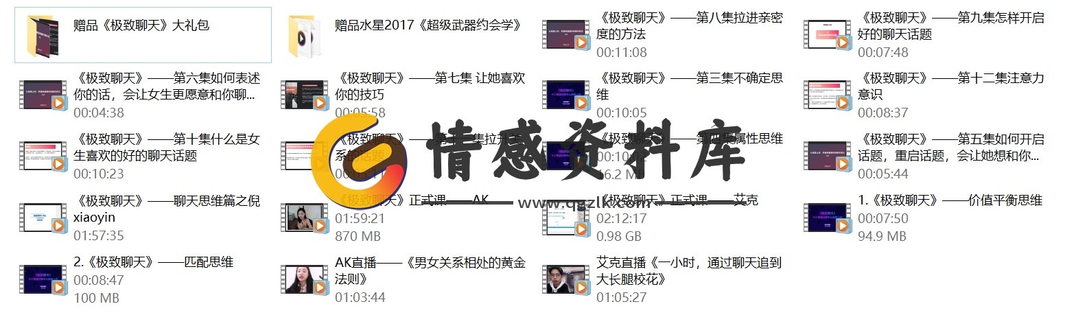 倪情感课程专区除了收集《极致聊天》课程外,还收集其他倪情感相关课程,需要学习的兄弟课到专区下载学习!