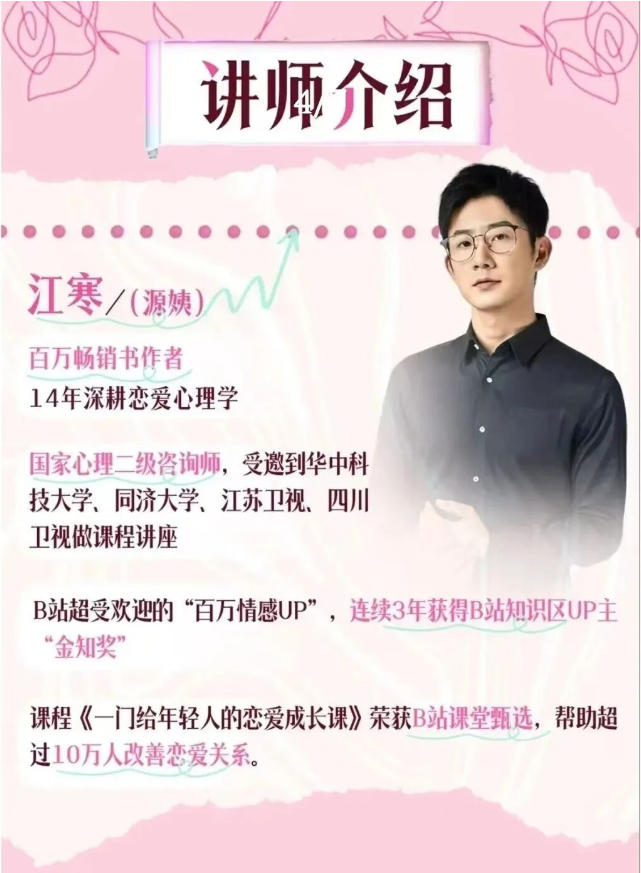 课程《一门给年轻人的恋爱成长课》荣获B站课堂甄选,帮助超过10万人改善恋爱关系。