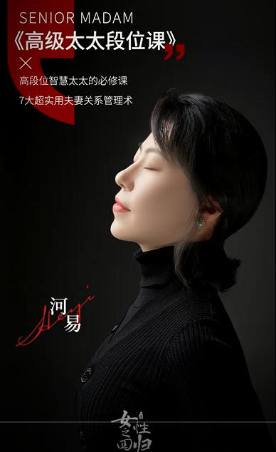 创始人河易女士从事高端女性培训领域工作10余年,并有5年全球高端女性培训经历。从业至今辅导过6000多个情感咨询个案,帮助上万名女性摆脱婚姻迷茫,真正实现了女性力量觉醒、女性智慧觉醒!抖音IP“河易 女性之回归”拥有用户80万+,付费课程《生命的富足》获得抖音知识付费教育类目销售排名top1,付费课程《婚姻的智慧》获得抖音全网婚姻类课程销售排名top1。