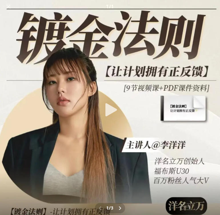 李洋洋的《镀金法则》是其主讲的一套关于个人成长、计划执行与财富管理的课程体系,核心内容围绕如何让计划产生正反馈,从而实现目标达成和自我提升。以下是该法则的主要要点: